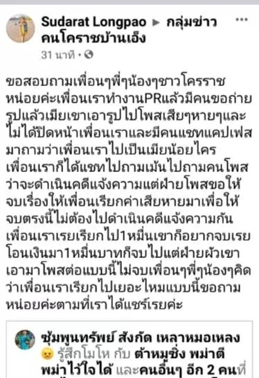 ทว่าล่าสุดทางสามีของเธอกลับโพสต์ด่าสาวบุคคลที่ 3 ว่า เมียผมโพสด่าผมคุณเสียหายตรงไหนคับ ช่วยรับ@ผมด้วยนะคับ จะหากินแบบนี้มันไมได้คับ พรุ่งนี้ใครว่างพาผมไปคุยหน่อยนะคับ ผมอยากได้ตังคืนคับ เพราะตอนนี้เมียกับผมทะเลาะกันเรื่องเงินที่จ่ายค่าเสียหายไปคับ ผมยอมรับว่าเมียผมโง่ ไมทักคนแต่ผมไมยอมแน่ ค่อยดูใครจะเสียหายกว่ากันคับ หึงผัวหลายจนยอมจ่ายค่าเสียหายเพราะเขาจะแจ้งตำรวจจับ5555