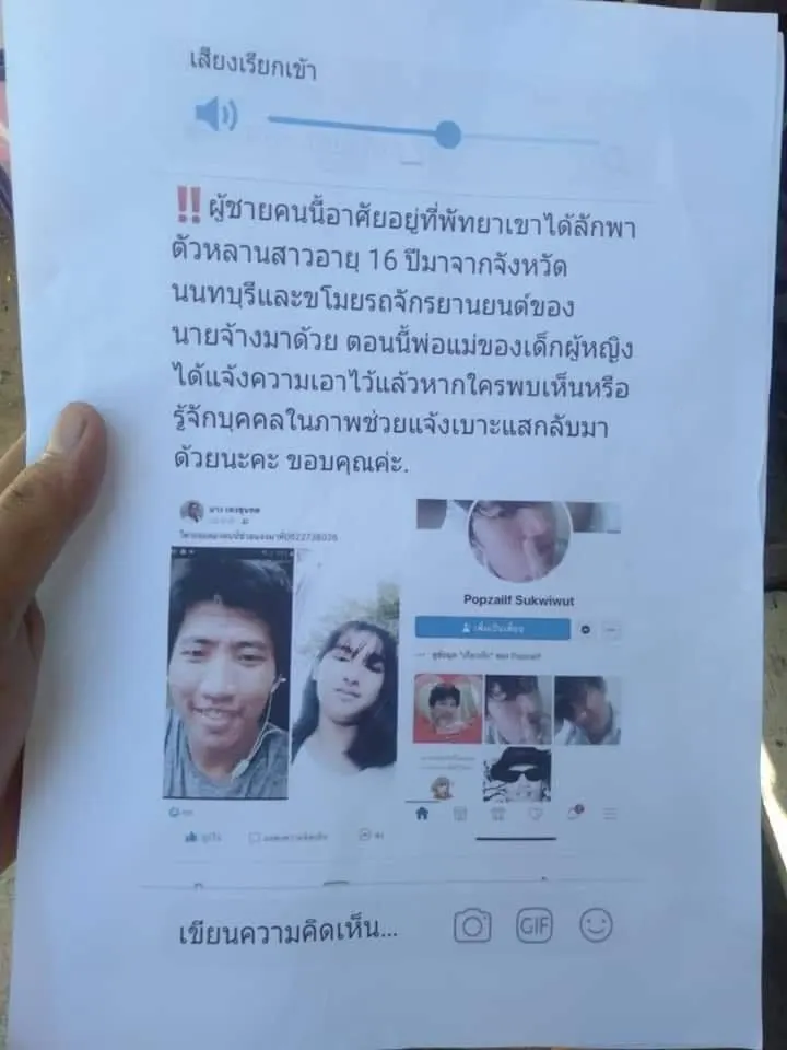 #ขออนุญาตนะคะ แม่เขามาตามหาลูกสาวอายุ 16 ปี มาจากนนทบุรี (ท่าอิฐ) ผู้ชายในภาพได้ลักพาตัวลูกสาวเขามาจากนนทบุรีตั้งแต่วันที่ 7 มาที่พัทยา ขโมยรถจักรยานยนต์รุ่น PCXสีดำ ของนายจ้างมาด้วย #ได้แจ้งความไว้แร้ว #ช่วยๆกันแชร์หน่อยน่ะค่ะ สงสารคนเป็นแม่