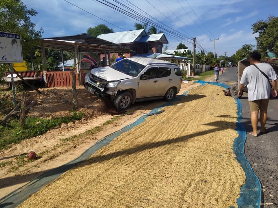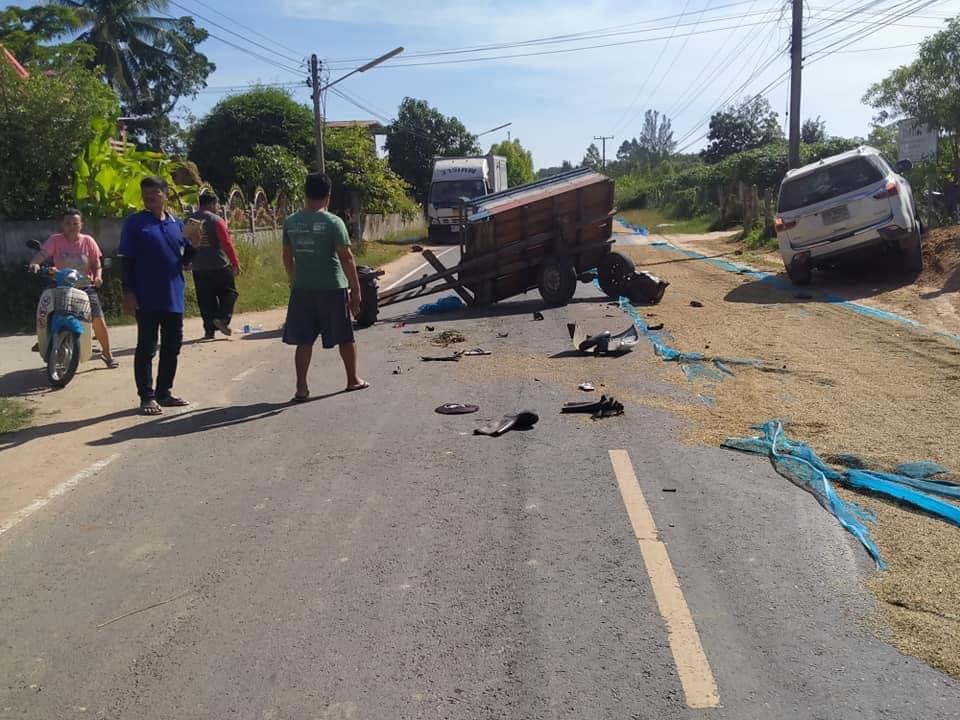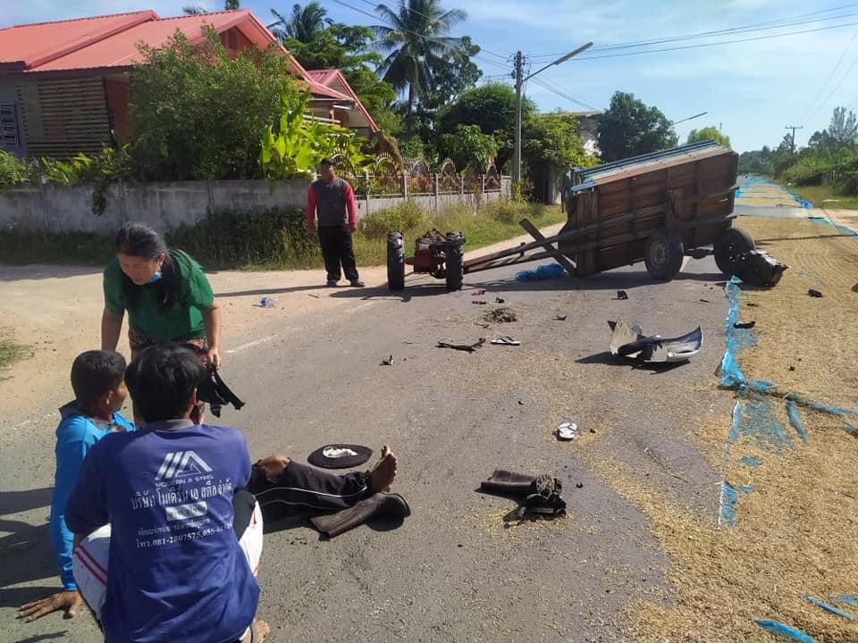 ถกเดือด! หลังรถยนต์หักหลบกองข้าว ไปชนรถอีแต๋นชาวบ้าน ใครผิด?