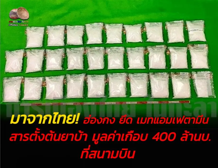 มาจากไทย! ฮ่องกง ยึด เมทแอมเฟตามีน สารตั้งต้นยาบ้า มูลค่าเกือบ 400 ล้านบ. ที่สนามบิน
