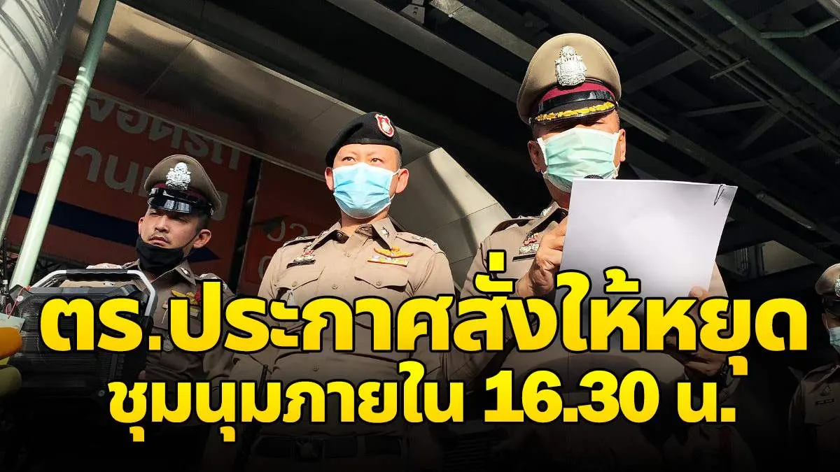 ตร.อ่านประกาศ สั่ง! ให้ยุติการชุมนุมภายในเวลา 16.30น. เหตุไม่ได้แจ้งการชุมนุม!