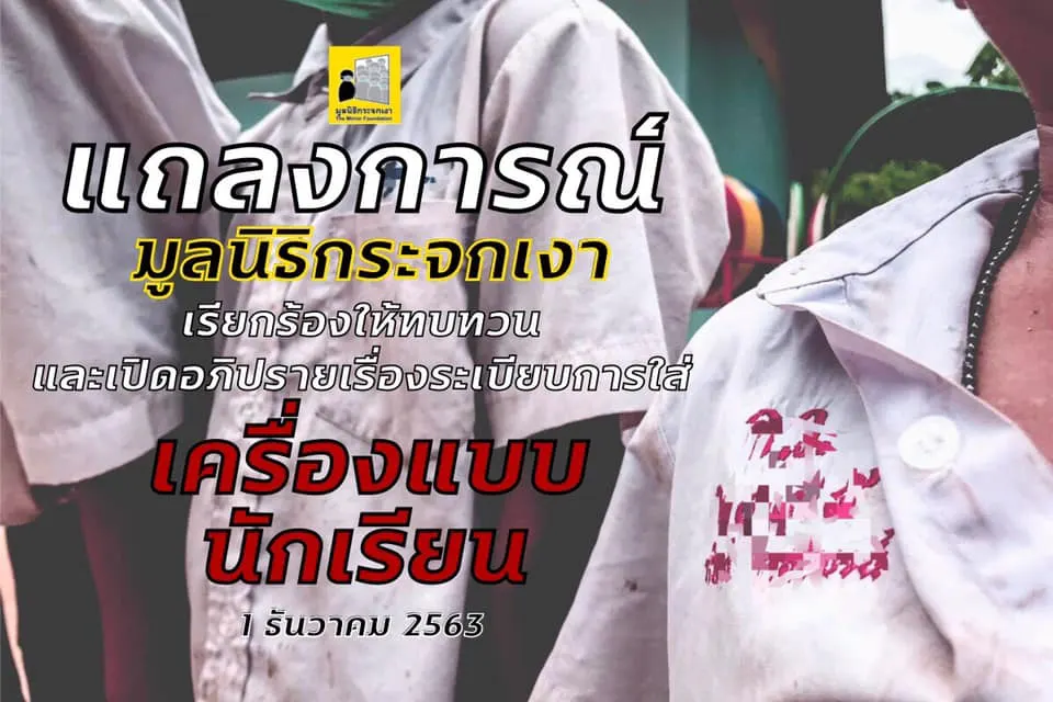 มูลนิธิกระจกเงา แถลงการณ์! เรื่อง ต้องมีการทบทวน และอภิปรายระเบียบการใส่เครื่องแบบนักเรียน