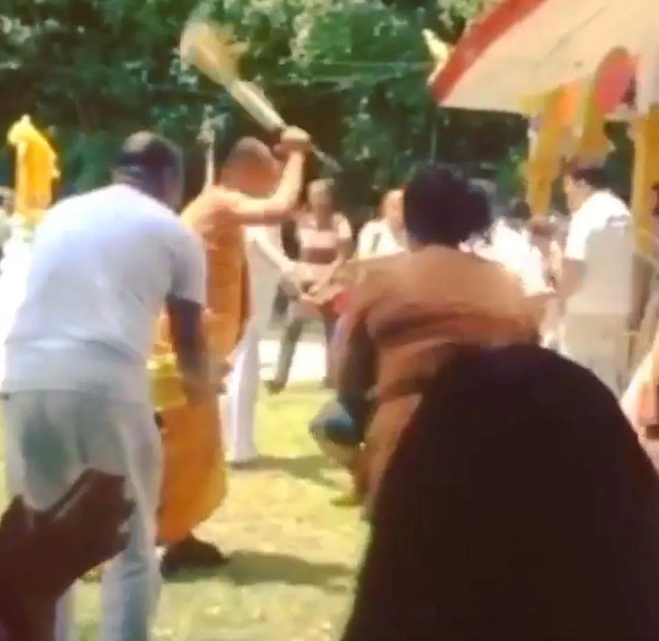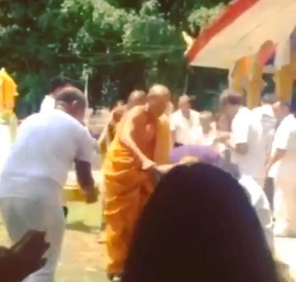คอแทบเคล็ด! หลวงพ่อรดน้ำมนตร์ ให้พร ญาติโยม ถ้าจะฟาดขนาดนี้..!!!