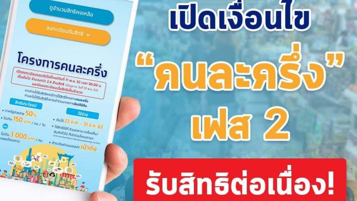 วันนี้ ที่ประชุม ศบศ.เห็นชอบมาตรการคนละครึ่งเฟส 2 เพิ่มอีก 5 ล้านสิทธิ์ ลงทะเบียน 16 ธ.ค. 2563