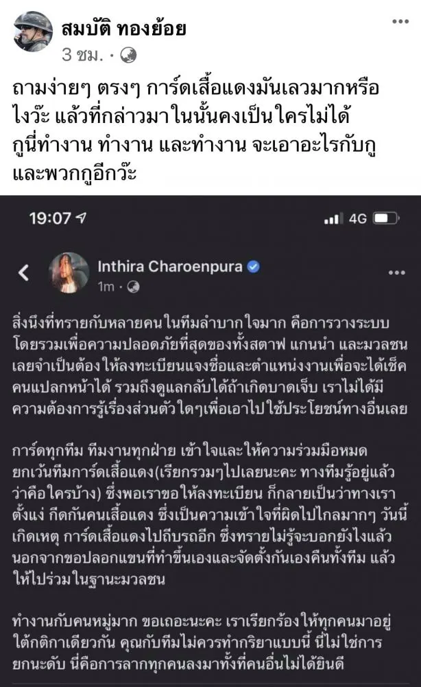 การ์ดเสื้อแดงถาม ทราย เจริญปุระ จะเอาไงกับพวกกู ปมดราม่าเเตะรถประชาชน