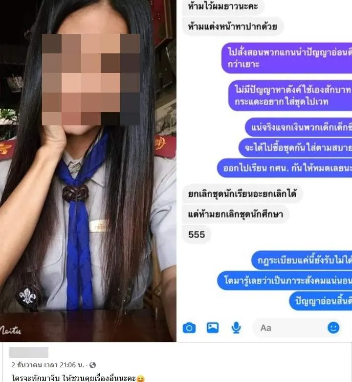 ครูด่ากราด! หลังมีคนทักมาคุยเรื่อง ชุดไปรเวท-ชุดนักเรียน