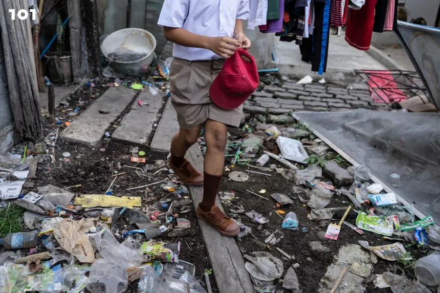 พื้นที่หลังวัดมูลจินดาราม บางส่วนถูกจับจองเป็นที่อยู่อาศัย สร้างบ้านไม้อยู่ด้วยกันประมาณ 5-6 หลัง เต้ย (นามสมมติ) นักเรียนชั้น ป.4 โรงเรียนวัดมูลจินดาราม เดินนำไปบ้านของเขาบนทางดินเล็กแคบที่รถใหญ่ผ่านไม่ได้ แดดเช้าลอดผ่านต้นกล้วยที่ขึ้นไม่เป็นระเบียบอยู่ข้างทาง ตรงดินมีขยะพลาสติกวางอยู่เป็นระยะ ทุกวัน เต้ยจะปั่นจักรยานไปโรงเรียนที่ห่างออกไปไม่กี่ร้อยเมตร โชคดีที่ไม่ต้องเสียค่าเดินทางมาโรงเรียน