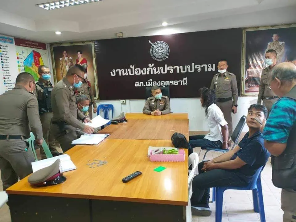 ต่อมาเจ้าหน้าที่สายตรวจ 191 สภ.เมืองอุดรธานีเดินทางไปถึงหอนาฬิกา พบคนร้ายรายดังกล่าวถือมีดควงไปมาและพูดจาเพ้อเจ้อเหมือนคนคลั่ง อยู่หน้าร้านขายยารวมชัยเภสัช