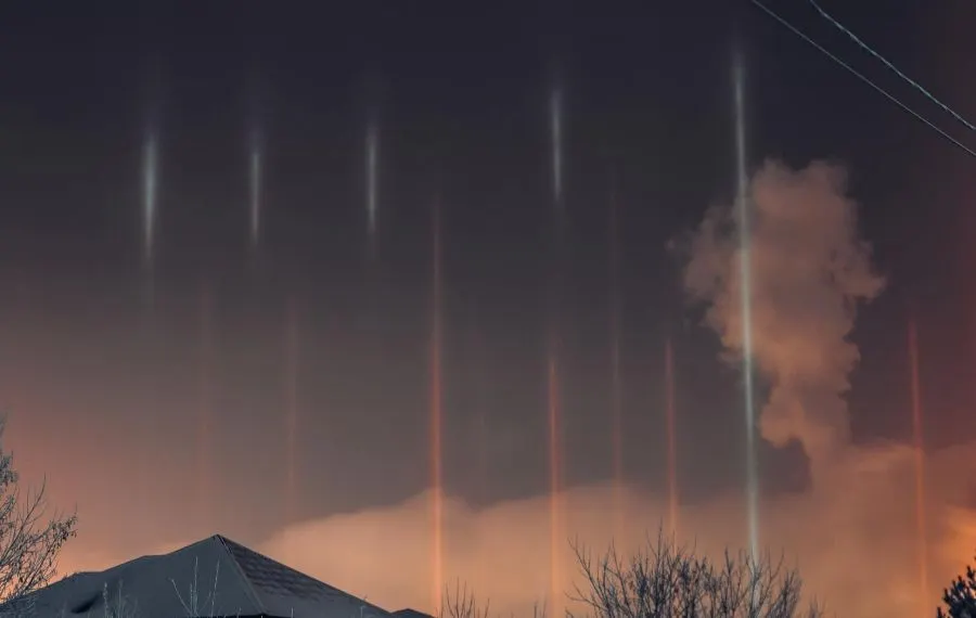 ปรากฏการณ์ "เสาแสง" สว่างสไวในตอนกลางคืนสวยงามสุดๆ