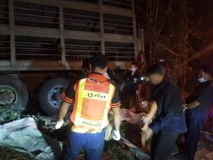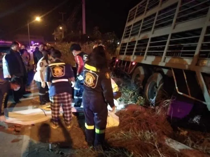 #ไม่เชื่อก็อย่าลบหลู่. เกิดอุบัติเหตุสลด‼.เขตพื้นที่อำเภอดอนเจดีย์ รถบรรทุก10ล้อ+จยย.เสียชีวิต3รายในที่เกิดเหตุ.