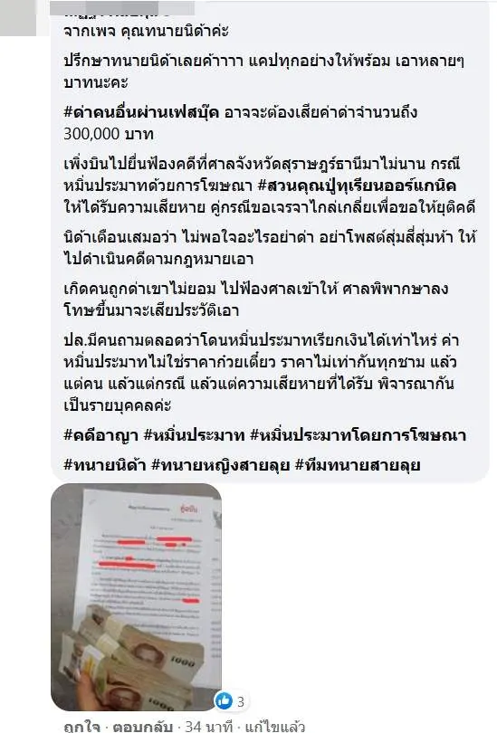 *อันนี้เป็นรูปที่เราแคปไว้ค่ะ เบื้องต้นเราล็อครูปไว้(เพราะกลัวโดนแชร์ต่อ) เราไม่รู้ว่าข้อความที่เค้าด่ามันแจ้งความได้มากน้อยแค่ไหน แต่เราก็ไม่อยากโดนแขวนประจานด้วยถ้อยคำแบบนั้น ทั้งๆที่เราไม่ได้ทำไรให้เขาเลย...
