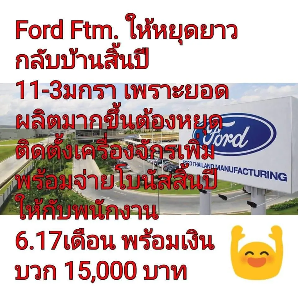 เฮทั้งโรงงาน!! ฟอร์ด FTM ระยองให้หยุดยาว 24วัน แถมจัดหนักโบนัสสิ้นปี