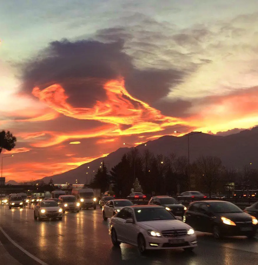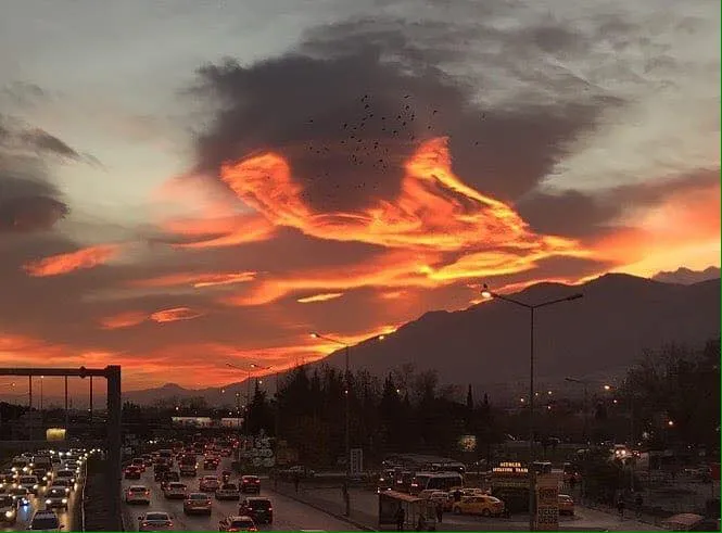 เช้า10 ธันวาคม มีเมฆหมอกบนท้องฟ้ากระทบกับแสงดวงอาทิตย์ ทำให้ฟ้าแดงทองดูสวยงาม และน่ากลัว ในสื่อออนไลน์ตุรกีต่างเอาเหตุการณ์ฟ้าแดงไปผูกกับเหตุการณ์ปี 1999 ที่เกิดฟ้าแดงคล้ายกัน และต่อมาเกิดแผ่นดินไหว /แนบคลิปในช่องความเห็น