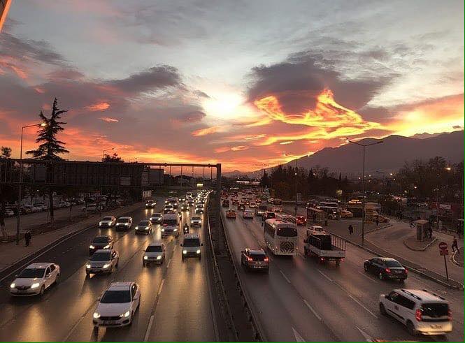 ตุรกี :เมือง Bursa ฟ้าแดงสีเพลิง ในช่วงเช้า 8.00 น.