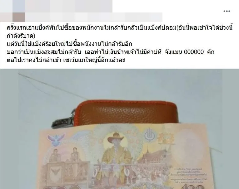 สาวเซ็ง!! ใช้แบงค์ใหม่ซื้อของ พนักงานไม่กล้ารับ กลัวแบงค์ปลอม อีกราย เผย แบงค์พันใหญ่มาก