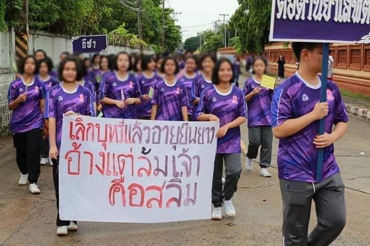 สุดปัง!! เด็กๆถือป้ายงานกีฬา "เลิกบุหรี่แล้วอายุยืนยาว อ้างแต่.....คือสลิ่ม!!"