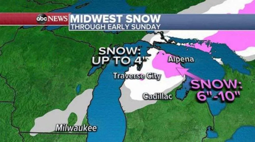 คาดว่าพายุจะข้ามคาบสมุทร ตอนล่างของมิชิแกน ในวันรุ่งขึ้นและเคลื่อน เข้าสู่แคนาดา จะทำให้เกิดสภาพลมแรง และมีหิมะตกทั่ว คาบสมุทรตอนล่าง และจะมีหิมะตกถึง 10 นิ้ว ในบางพื้นที่ ภายในคืนวันเสาร์