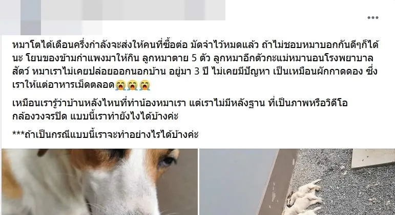 โซเชียลรับไม่ได้!! สาวโพสต์ ลูกหมา ถูกวางยา ตายสลด 5 ตัว อยู่มา 3 ปี ไม่เคยปล่อยออกนอกบ้าน