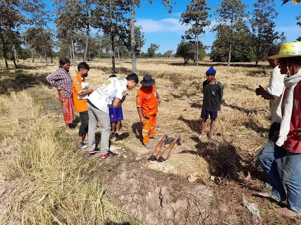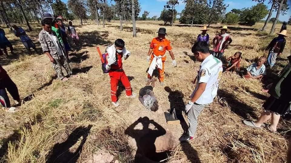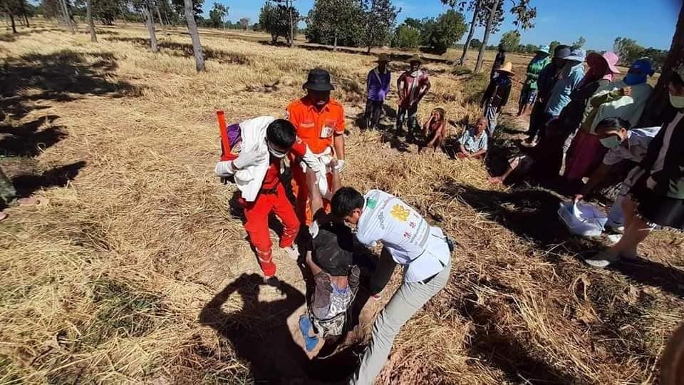 เมื่อวันที่12ธันวาคม2563เวลาประมาณ09.20น.รับแจ้งจากสภ.สำโรงทาบว่ามีเหตุคนนอนเสียชีวิตที่ทุ่งนาบ้านหมื่นศรีกลางตำบลหมื่นศรีอำเภอสำโรงทาบกู้ภัยจุดสำโรงทาบพร้อมพนักงานสอบวสวนและแพทย์เวรออกร่วมชันสูตรและเก็บหลักฐานในที่เกิดเหตุ เบื้องต้นพบชายอายุประมาน77ปีเสียชีวิตในลักษณะดังกล่าวในภาพที่กลางทุ่งนา ห่างออกจากหมู่บ้านประมาณ2 กม. ซึ่งน้องสาวผู้เสียชีวิตบอกว่าพี่ชายชอบหากินอยู่แล้ว พี่ชายออกจากบ้านประมาณ1ทุ่ม ซึ่งไปดูหลุมที่ได้ขุดดักกบไว้และไม่ได้เอะใจ ตอนเช้ามาพบว่าพี่ชายยังไม่กลับบ้านเลยออกตามหา พบว่าพี่ชายนอนเสียชีวิตในหลุมดักกบในลักษณะดังกล่าวจึงได้แจ้งผู้ใหญ่บ้าน ต่อมา แพทย์จึงให้กู้ภัยนำศพส่งชันสูตรที่โรงบาลเพื่อหาสาเหตุที่แท้จริงต่อไป
