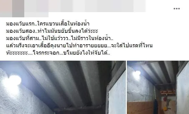 หนุ่มนึกว่าใครแขวนเสื้อในห้องน้ำ ทำไมขยับขึ้นลงได้ พอดูชัดๆ ถึงกับเผ่นป่าราบ
