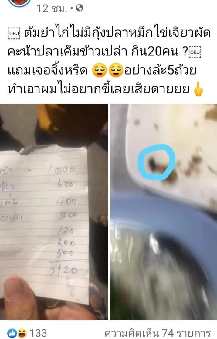 ต้มยำไก่ไม่มีกุ้งปลาหมึกไข่เจียวผัดคะน้าปลาเค็มข้าวเปล่า กิน20คน ? เเถมเจอจิ้งหรีด อย่างล้ะ5ถ้วย