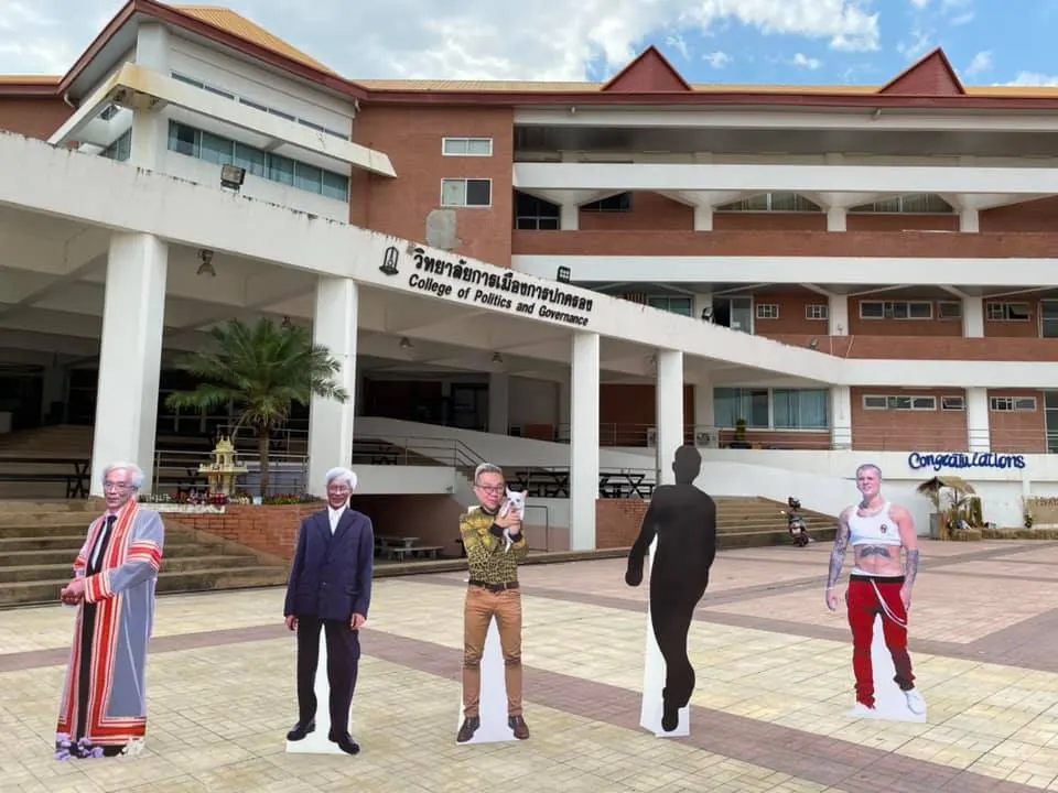 โดนเก็บเรียบ!! สแตนดี้ ไว้ถ่ายรูป ลานแปดเหลี่ยม หน้าวิทยาลัยการเมือง