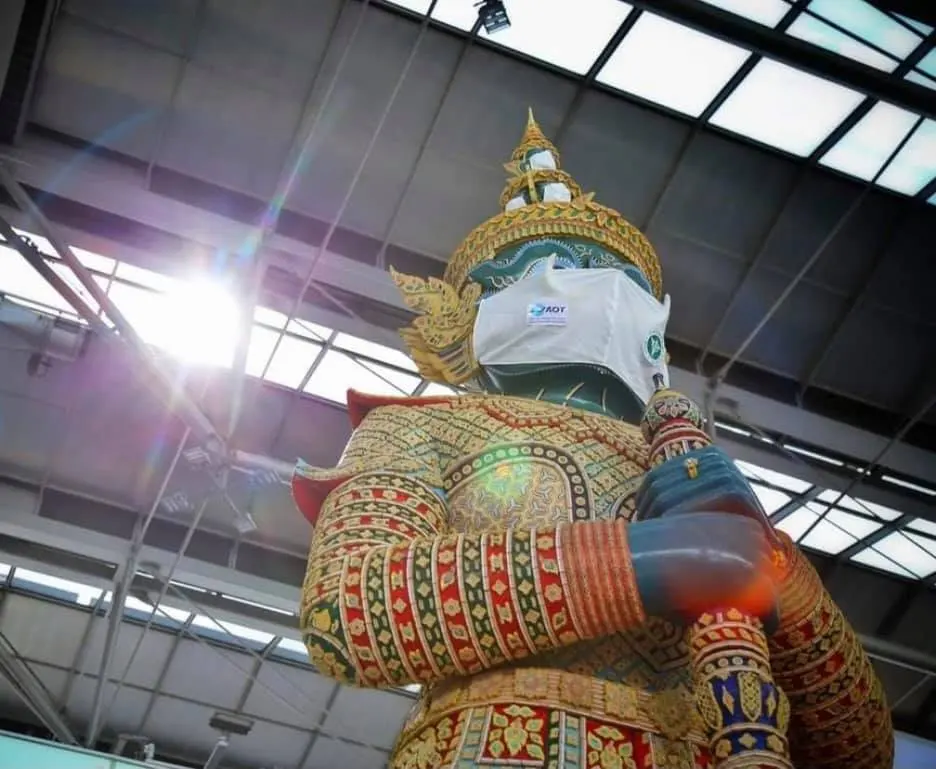 อินเทรนด์สุดๆ ยักษ์ท่าอากาศยานสุวรรณภูมิ สวมหน้ากากป้องกัน Covid-19