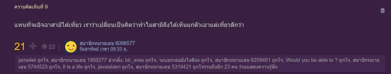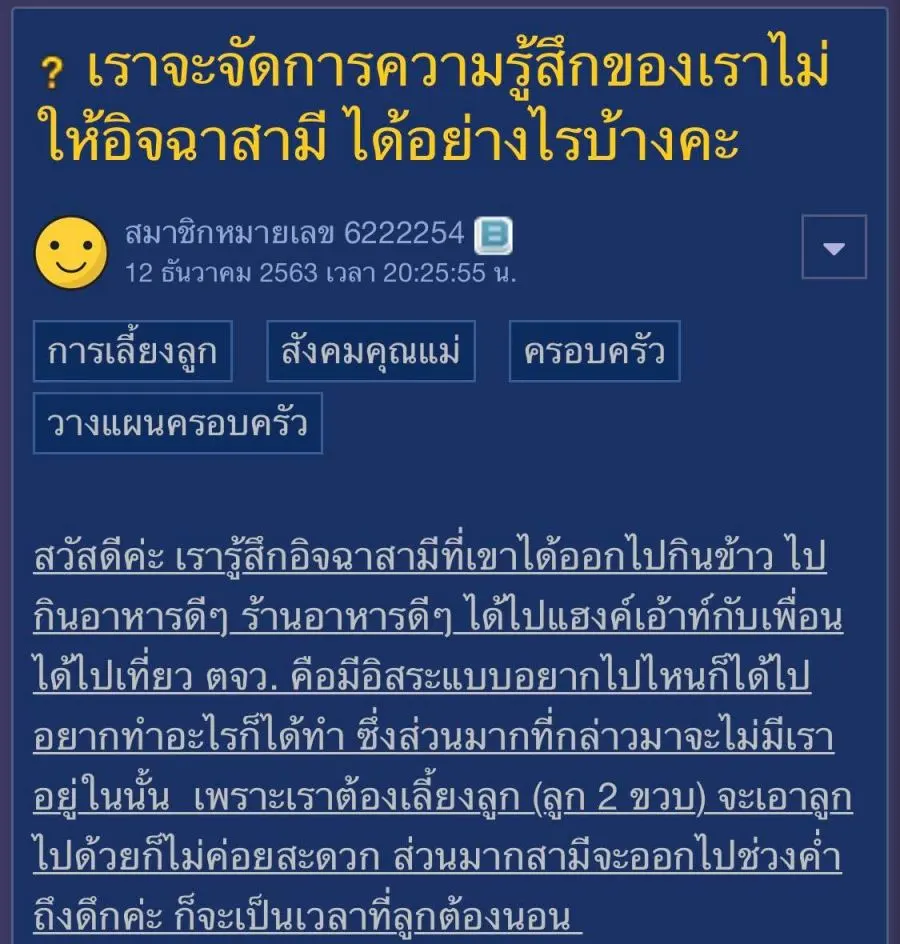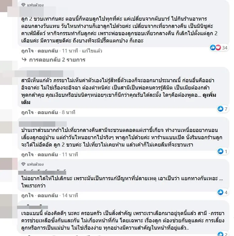 สวัสดีค่ะ เรารู้สึกอิจฉาสามีที่เขาได้ออกไปกินข้าว ไปกินอาหารดีๆ ร้านอาหารดีๆ ได้ไปแฮงค์เอ้าท์กับเพื่อน ได้ไปเที่ยว ตจว. คือมีอิสระแบบอยากไปไหนก็ได้ไป อยากทำอะไรก็ได้ทำ ซึ่งส่วนมากที่กล่าวมาจะไม่มีเราอยู่ในนั้น เพราะเราต้องเลี้ยงลูก (ลูก 2 ขวบ) จะเอาลูกไปด้วยก็ไม่ค่อยสะดวก ส่วนมากสามีจะออกไปช่วงค่ำถึงดึกค่ะ ก็จะเป็นเวลาที่ลูกต้องนอน