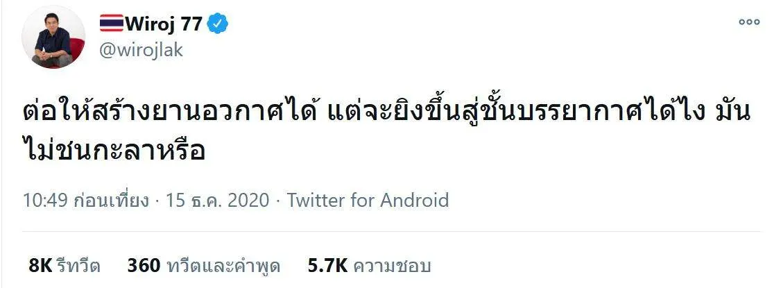 "วิโรจน์" ถาม "จะยิงยานอวกาศ ขึ้นสู่ชั้นบรรยากาศได้ไง" มันไม่ชน"กะลา"หรือ?