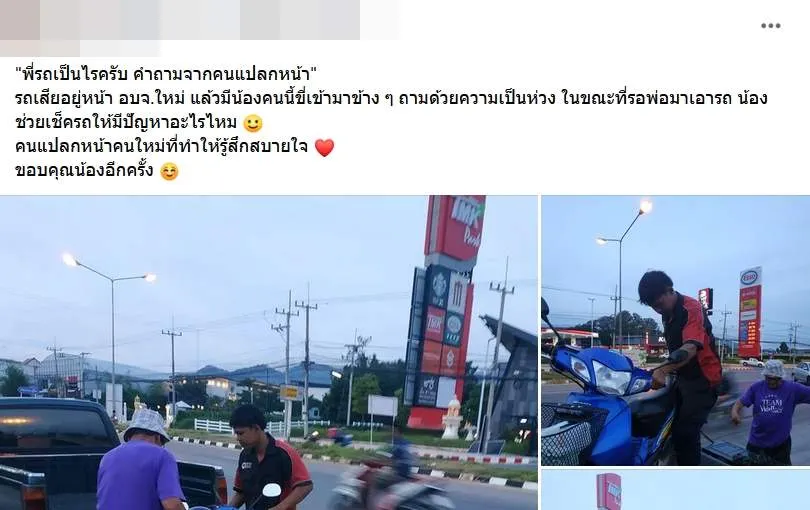 หนุ่มสุดซึ้ง!! รถเสียกลางทาง เจอคนแปลกหน้าถาม "พี่รถเป็นไรครับ"