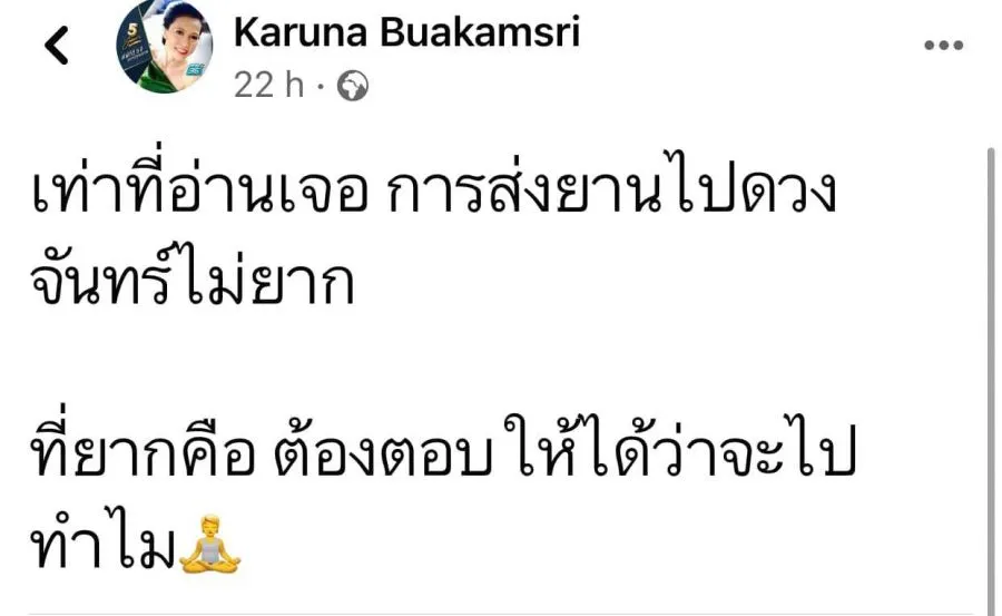 "กรุณา บัวคำศรี" โพสต์ ถาม!! "จะไปทำไม" ? ประเด็นส่งยานไปดวงจันทร์
