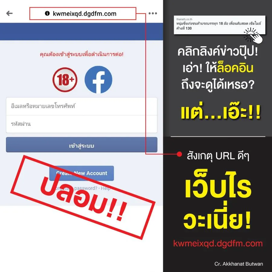 คุณอาจจะตกใจว่ามีเพื่อนหรือคนรู้จักประสบอุบัติเหตุในข่าวเหรอ?...หากคลิกตามลิงค์ข่าวไป...จะปรากฏหน้า facebook (ปลอม)ให้ login เพื่อหลอกเอารหัสและพาสเวิร์ด นะครับ (สังเกตุ URL ได้ง่ายๆ)