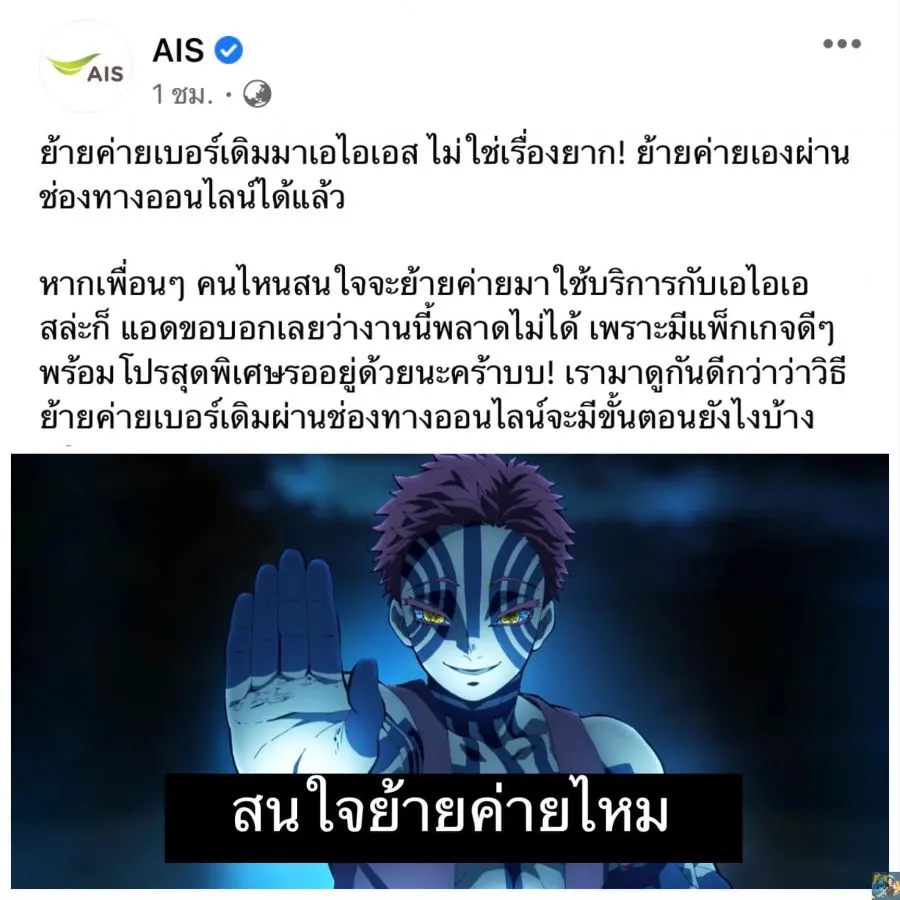 หากเพื่อนๆ คนไหนสนใจจะย้ายค่ายมาใช้บริการกับเอไอเอสล่ะก็ แอดขอบอกเลยว่างานนี้พลาดไม่ได้ เพราะมีแพ็กเกจดีๆ พร้อมโปรสุดพิเศษรออยู่ด้วยนะคร้าบบ! เรามาดูกันดีกว่าว่าวิธีย้ายค่ายเบอร์เดิมผ่านช่องทางออนไลน์จะมีขั้นตอนยังไงบ้าง คลิกเลย! https://m.ais.co.th/6yH6gbPs8