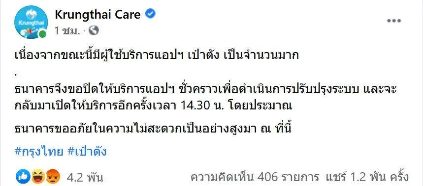ธ.กรุงไทย ประกาศปิดให้บริการ แอปฯเป๋าตัง ชั่วคราว!! เพื่อดำเนินการปรับปรุงระบบ