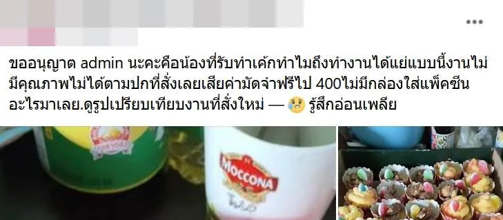 ขออนุญาต admin นะคะคือน้องที่รับทำเค้กทำไมถึงทำงานได้แย่แบบนี้งานไม่มีคุณภาพไม่ได้ตามปกที่สั่งเลยเสียค่ามัดจำฟรีไป 400ไม่มีกล่องใส่แพ็คซีนอะไรมาเลย.ดูรูปเปรียบเทียบงานที่สั่งใหม่