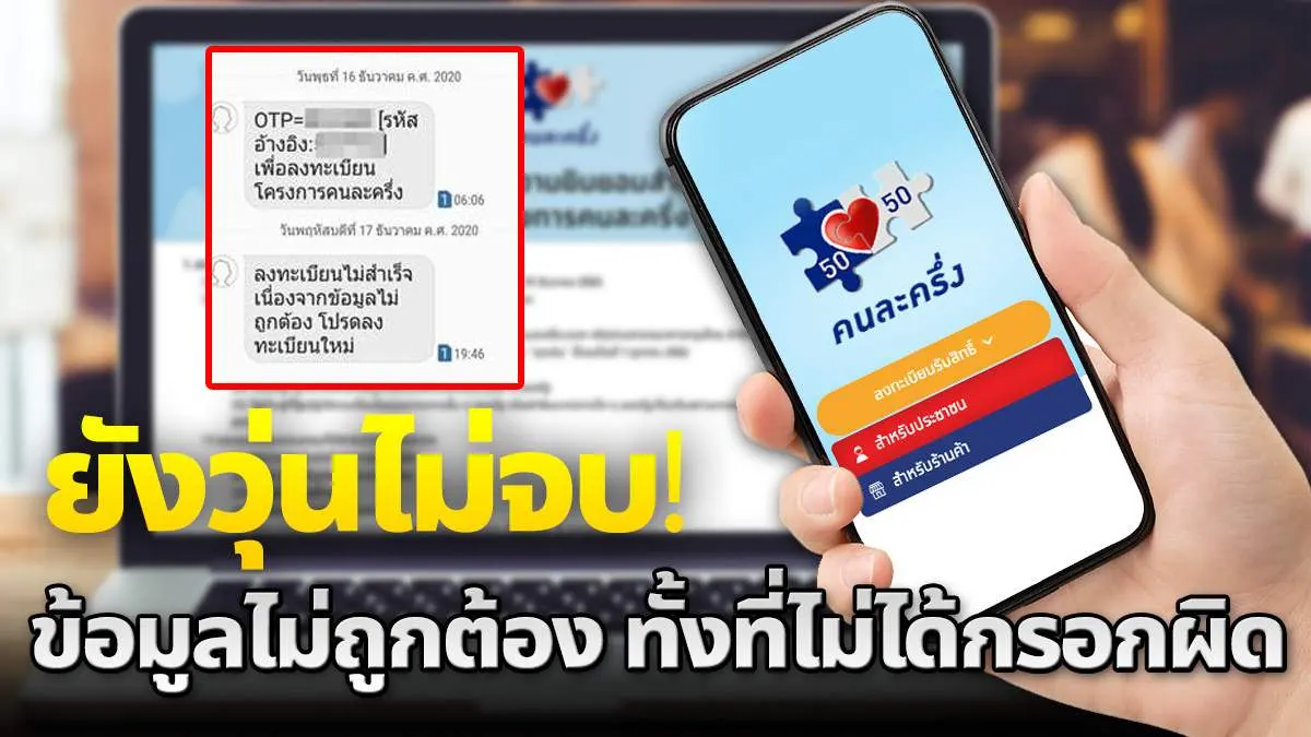 ล่าสุด ปัญหาของโครงการคนละครึ่งเหมือนจะยังไม่จบ เนื่องจากผู้ที่ลงทะเบียนคนละครึ่งเฟส 2 และได้รับรหัส OTP ยืนยันการลงทะเบียนนั้น กลับได้รับ SMS แจ้งผลระบุข้อความว่า ลงทะเบียนไม่สำเร็จ เนื่องจากข้อมูลไม่ถูกต้อง โปรดลงทะเบียนใหม่” ซึ่งกลายเป็นที่วิพากษ์วิจารณ์ในโลกออนไลน์อีกครั้ง จนมีการติดแฮชแท็ก #คนละครึ่งเฟส2 ขึ้นเทรนด์อันดับ 1 บนโลกทวิตเตอร์