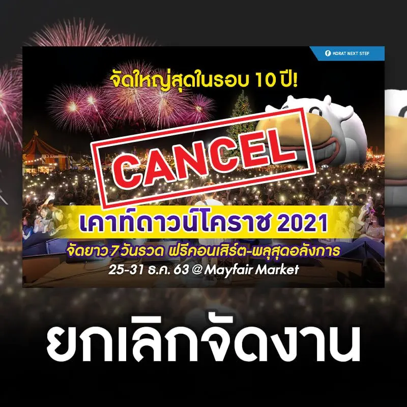 ปิดอีกงาน! "เคาท์ดาวน์โคราช" ยกเลิกเเล้ว