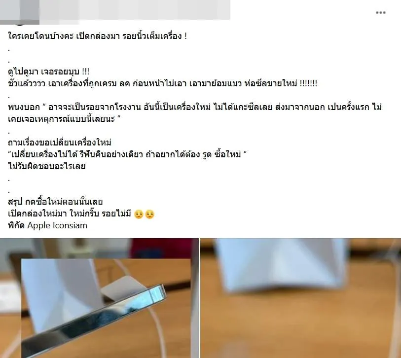 สาวโวย!! ซื้อไอโฟน เปิดกล่องมา รอยมือเพียบ-รอยบุบ เชื่อ!! โดนย้อมแมว ห่อซีลขายใหม่!!