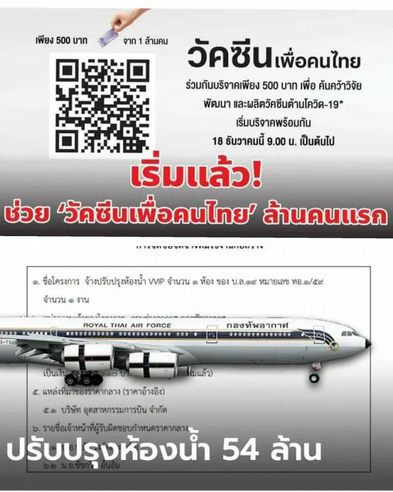 ชาวเน็ตเศร้า!! วัคซีนสิ่งจำเป็นเปิดขอรับบริจาค..แล้วหันมาดูห้องน้ำบนเครื่องบิน 54 ล้านนั้น
