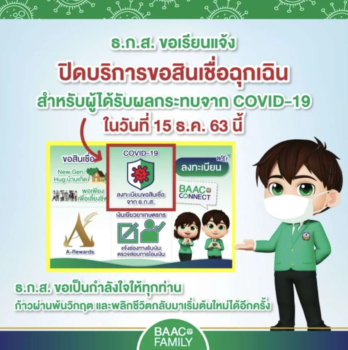 รีบกู้! ธ.ก.ส.ประกาศปิดบริการ 'สินเชื่อฉุกเฉินจาก covid' ให้ยื่นกู้ได้ถึง 15 ธ.ค. นี้
