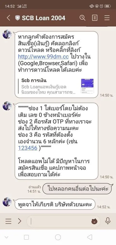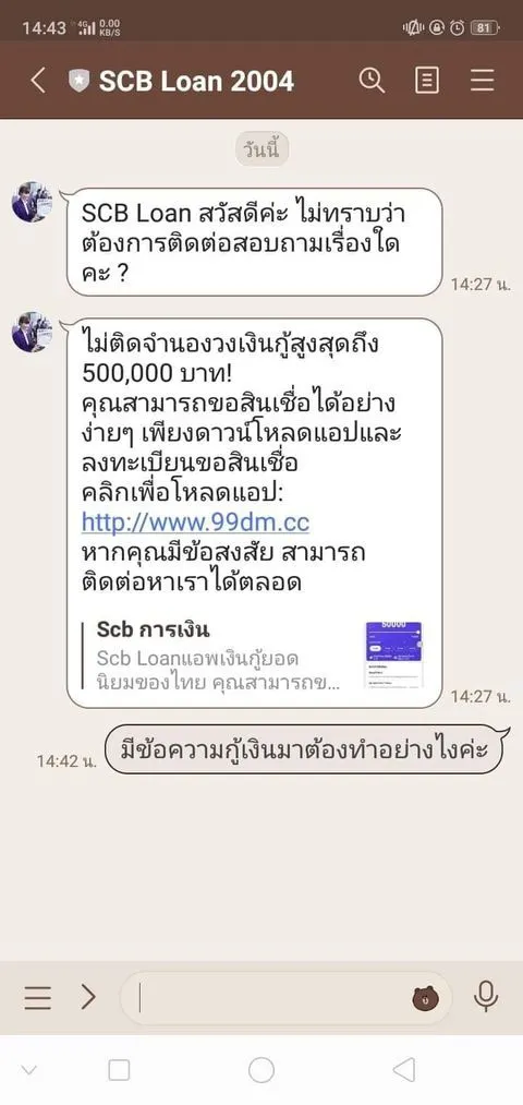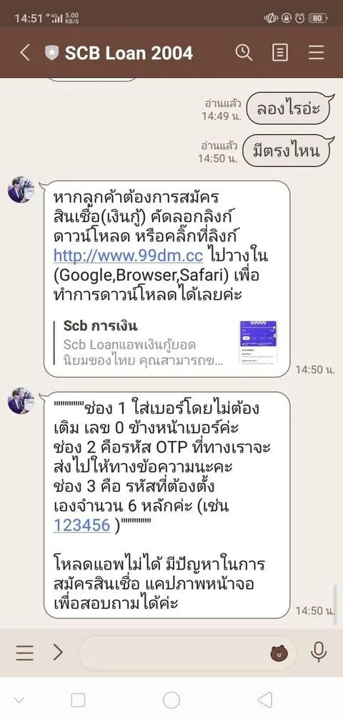 เหยื่อที่ถูกพวกแอบเงินกู้ที่อ้างชื่อ scb ฝากมาครับ โคตรจะไม่เนียนเล้ยยยยย คนใช้ iphone ก็ไม่ปลอดภัยนะ มันไม่ใช่แอปที่ถูกต้องใน itune store แต่มันจะสอนวิธีลงแอปนอกสโตร์ให้ น่ากัวสัส