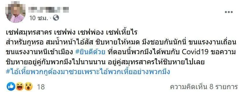 สุดเดือด!! หนุ่มสะใจ หลัง สมุทรสาครติดโควิด ลั่น!! "ชิบหายให้หมดทั้งจังหวัดนั่นล่ะ"