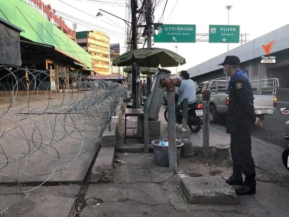 โควิดกลัวลวดหนาม? จนท. นำรั้วลวดหนาม กั้นโดยรอบ ตลาดเเพกุ้ง
