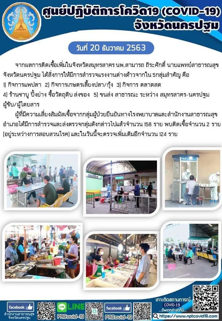 20 ธันวาคม 2563 นพ.สามารถ ถิระศักดิ์ นายแพทย์สาธารณสุข #จังหวัดนครปฐม เผยพบผู้ป่วยโควิด-19 จำนวน 2 ราย จากกลุ่มผู้มีประวัติสัมผัสโรคจากสมุทรสาคร