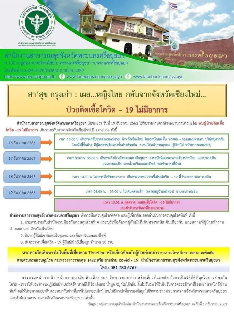 #อยุธยา เจอ หญิง 29 ปี” ติดโควิด เพิ่งเดินทางกลับจากเชียงใหม่