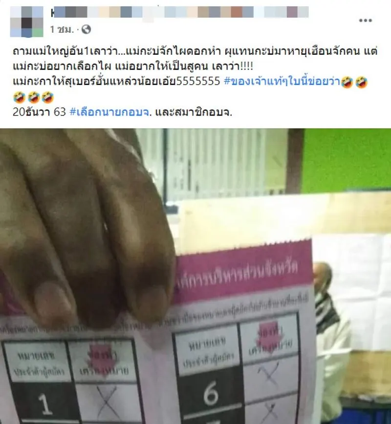 แม่อยากให้เป็นสูคน เลาว่า แม่กะกาให้สุเบอร์ฮั่นแหล่วน้อยเอ้ย5555555 #ของเจ้าแท้ๆใบนี้ข่อยว่า 20 ธันวา 63 #เลือกนายกอบจ. และสมาชิกอบจ."
