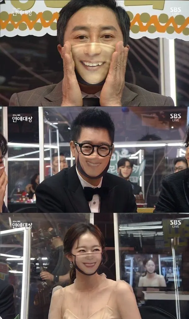 สุดฮา!! งาน SBS Awards 2020 เหล่านักแสดงสวมแมสก์ เป็น "รูปปาก" ของตัวเอง
