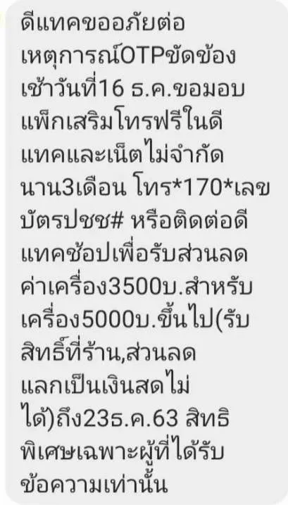 อย่างไรก็ตาม ขอยืนยันว่าทางดีแทคไม่ได้นิ่งนอนใจกับปัญหาดังกล่าวที่เกิดขึ้น โดยได้เร่งแก้ไขด้วยความรวดเร็วอย่างเต็มที่ และขอสัญญาจะป้องกันไม่ให้ปัญหาในลักษณะดังกล่าวเกิดขึ้นอีกในอนาคต เพื่อให้ลูกค่าได้ผลประโยชน์สุูงสุด