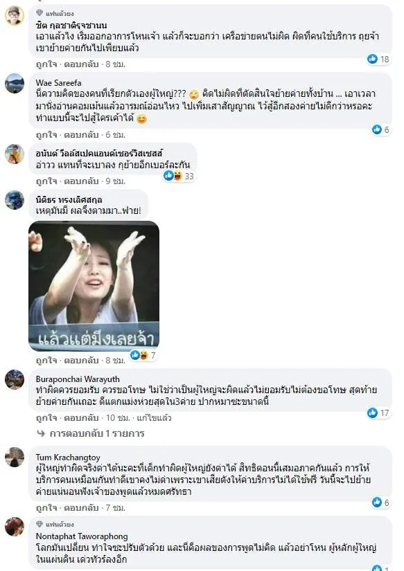 อย่าทำอะไรที่รังแกผู้หญิงเลยครับ เขาก็ทำมาหากินเลี้ยงดูตัวเอง ขอร้องเถอะครับ คนเราอย่าเอาแต่ว่ามีโซเชียลมีเดียแล้วคุณจะพูดอะไรก็ได้ ทำอะไรก็ได้ ใช่ ผมไล่ตามฟ้องพวกคุณไม่ได้หรอก เพราะว่าพวกคุณไม่รู้ว่าเป็นลูกค้าเราหรือเปล่า หรือคุณเป็นคนที่ใครจ้างมาหรือเปล่า เราไม่รู้ แต่ถ้าคุณเป็นลูกค้าเราจริง เราขอโทษครับ ผมก็พูดขอโทษในวันนั้นต่อไปอีกครั้งหนึ่งแทนผู้บริหาร