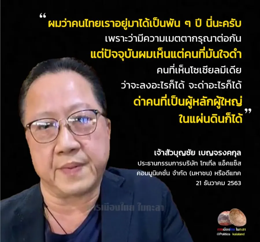 หลังจากที่เพจ การเมืองไทย ในกะลา ได้เผยแพร่ข้อความดังกล่าวออกไป ก็มีทัวร์ลงเจ้าสัวบุญชัย แบบไม่ได้พุดได้เกิดกันเลยที่เดียว
